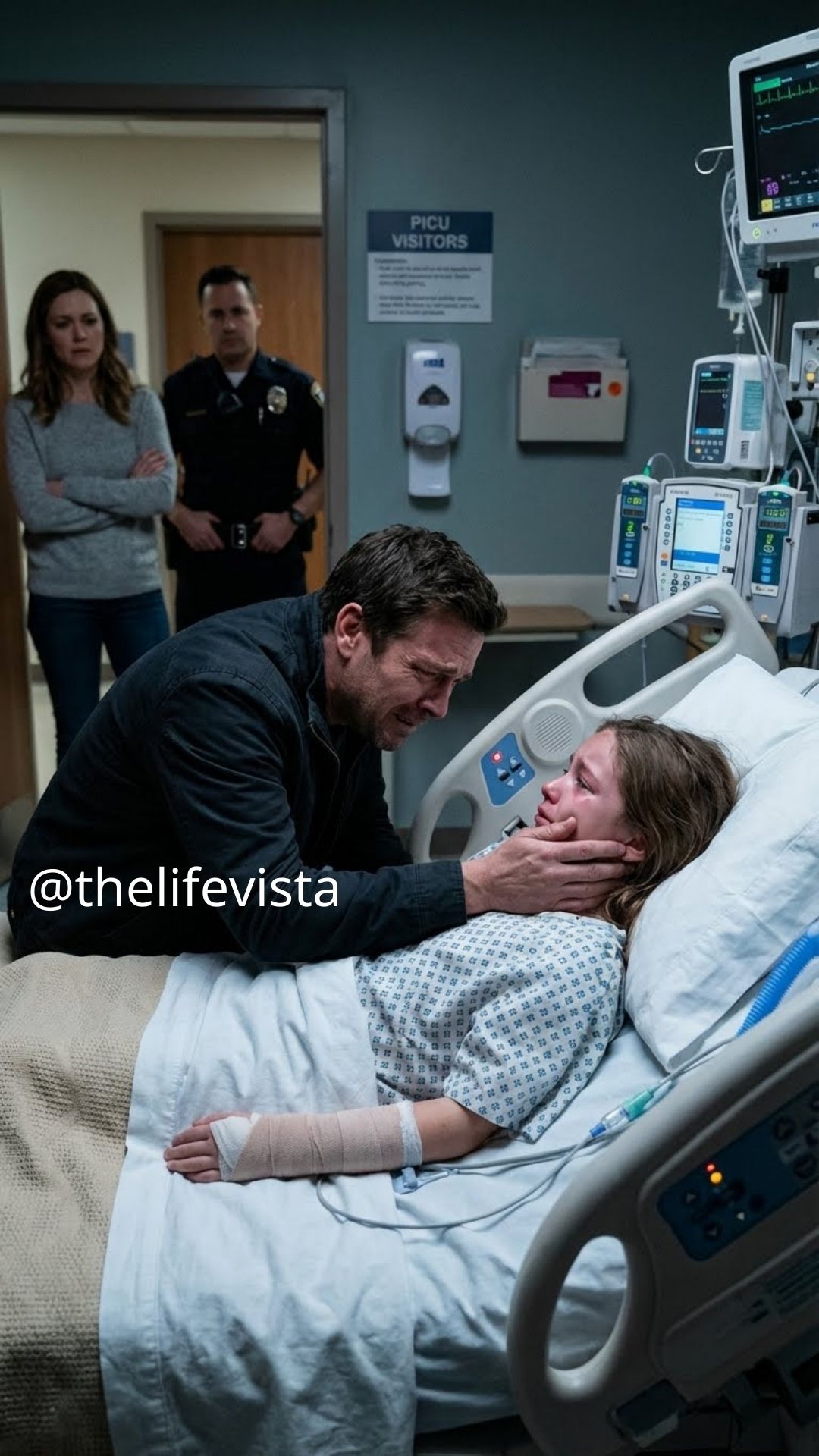 When I reached the hospital, the smell of antiseptic hit me like a wall. A nurse led me to the pediatric ICU. Ava was lying on the bed, pale and unbearably small, both hands wrapped in thick white bandages. Machines beeped softly around her.