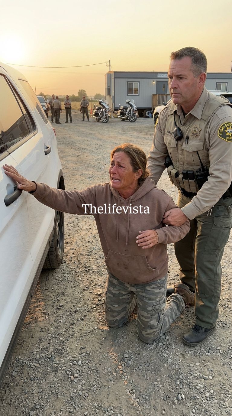 A woman in her early thirties — dark hair pulled into a low ponytail, hands trembling — was kneeling on the pavement, clutching a small boy who could not have been older than eight.
