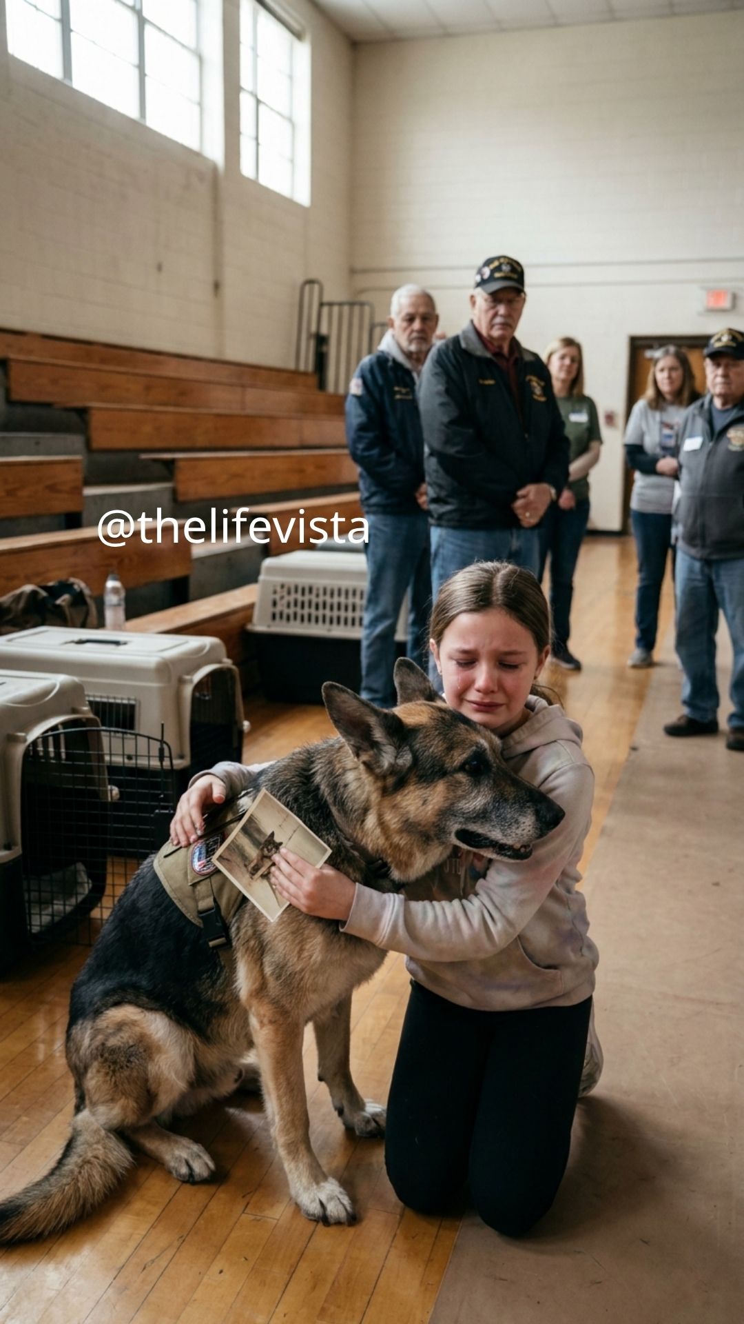 He closed the folder slowly. By now, the entire gymnasium had fallen into a profound silence. Volunteers stood frozen in place. Veterans who had been moving between kennels stopped where they were. Everyone present could sense, with the instinct of those who had lived through intense situations, that something far larger than any of them was unfolding in this corner of the room.