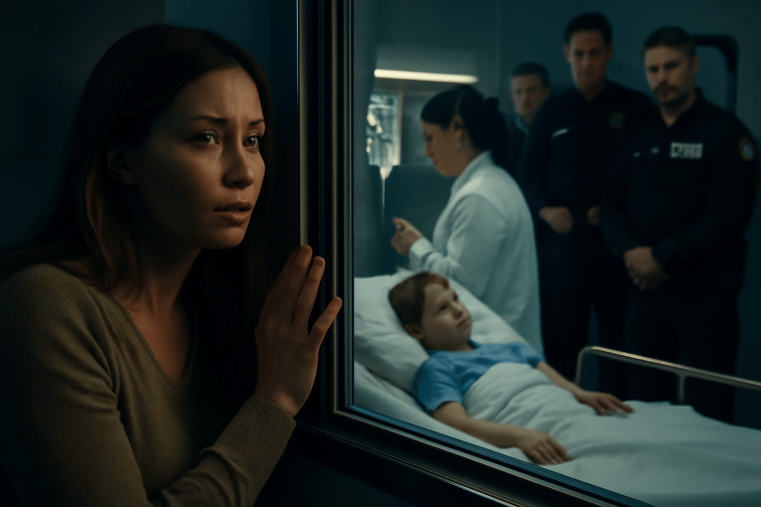 My pulse pounded in my ears as I peered inside. Ethan lay sleeping, his small body curled on its side, a picture of innocence. But beside him stood a woman in a white coat, her back to us. She lifted a syringe, sliding the needle into Ethan’s IV with precise, practiced movements.