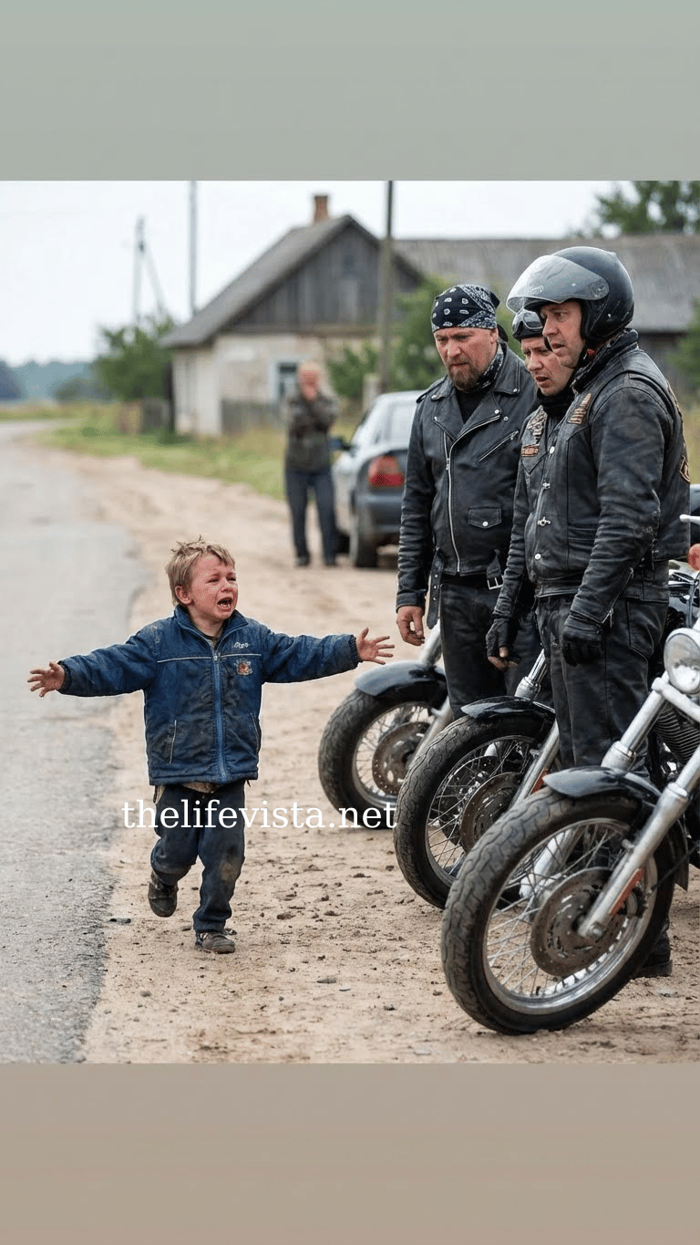 But while other customers sat frozen in shock, unsure what to do, the eight bikers stood up immediately. Chairs scraped against the floor. Boots hit the tile. Logan walked over and knelt down to the boy’s level, making himself less intimidating. “Where is she, son?” His voice was calm, but deadly serious. The boy pointed with a shaking hand across the street to a run-down motel parking lot.
