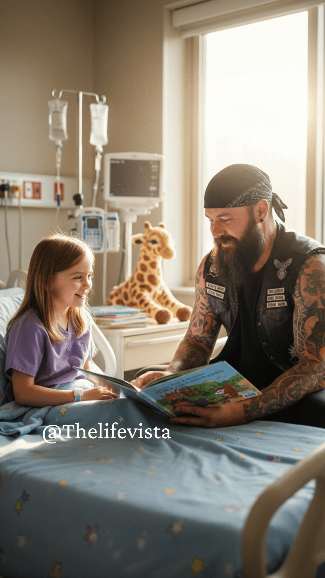 The next day, fifteen bikers rolled into the hospital parking lot—boots, leather, roaring engines, tattoos—and every one of them carried a stuffed animal or a storybook. Nurses peered through windows, half worried, half confused, until they realized the Defenders weren’t there for trouble.