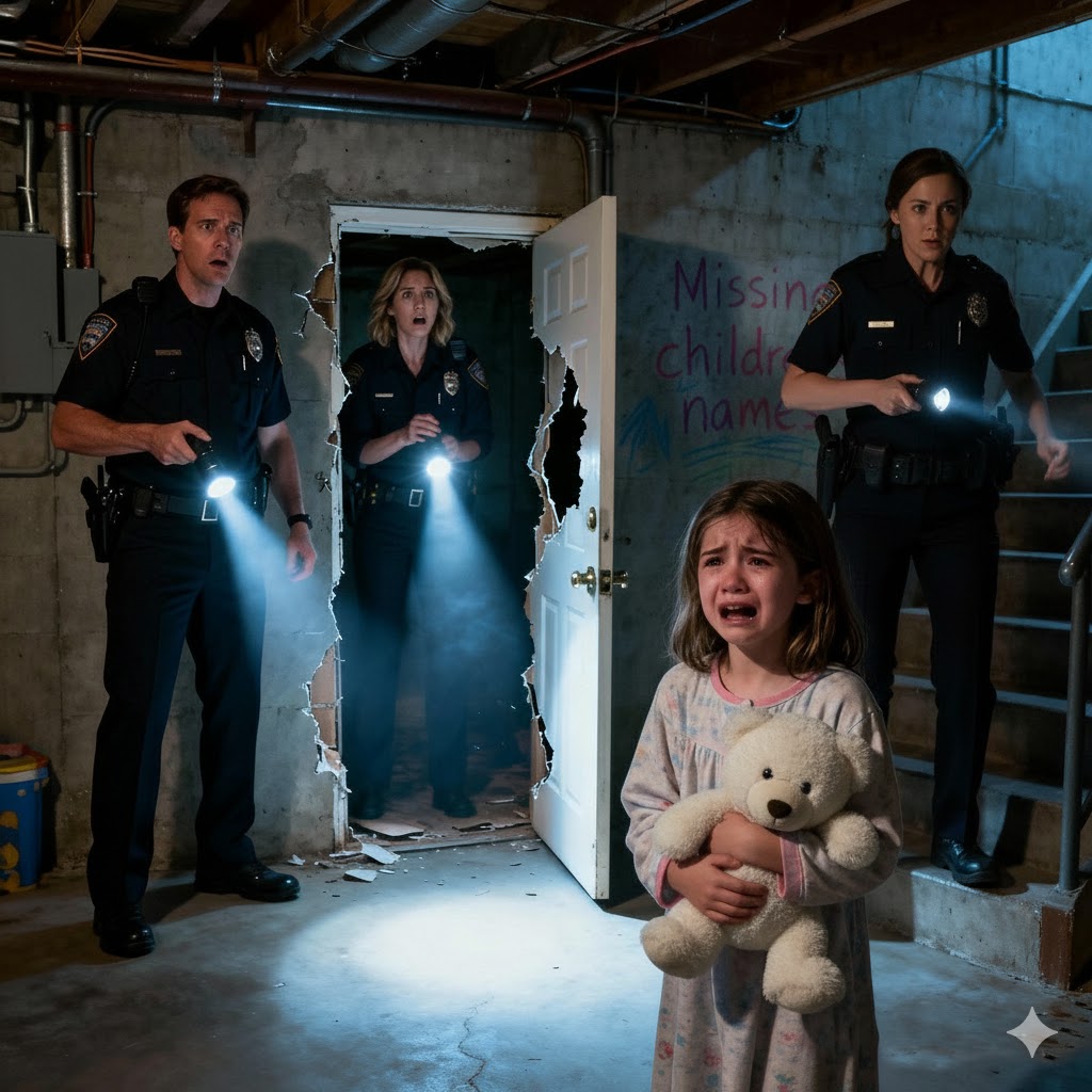 Just then, a faint sound drifted up from below—the muffled whimper of a child. The officers froze. Without waiting for permission, James moved to the basement door.