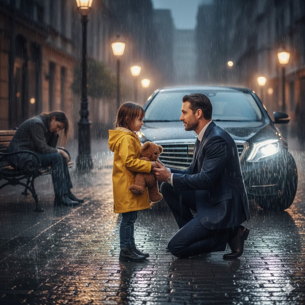 The man looked down. He had lived a life that taught him to listen to numbers rather than to words, to spreadsheets rather than to pleas. His name was Daniel Brooks, and his world had been contained by conference rooms and contracts. He was used to power, to decisions that rippled into other people’s lives like a stone through a pond. Now the stone was in his hand: small, insistent, the wet fingers of a child.