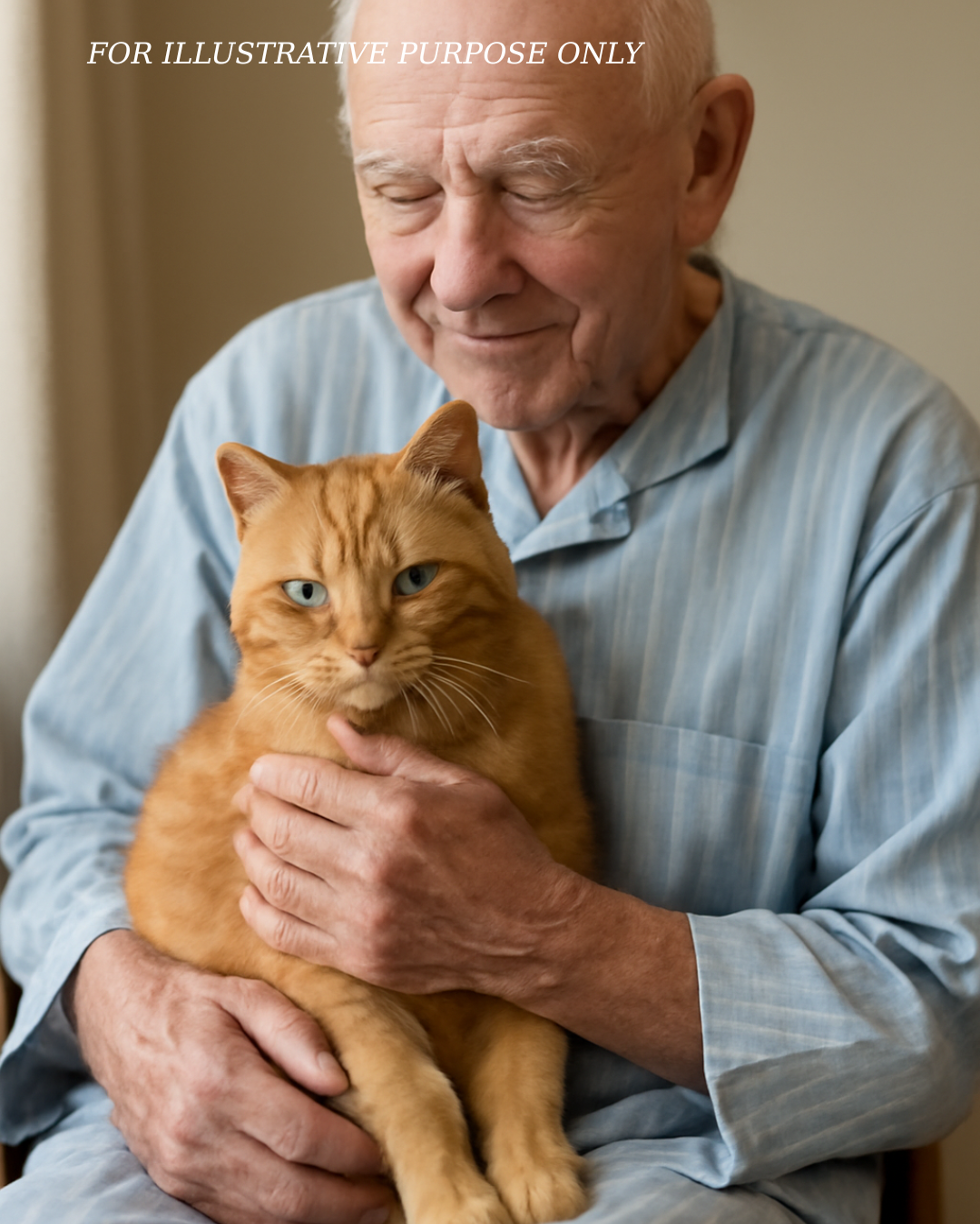 The nurse opened the door to the room – and Kitty, without hesitation, jumped onto the bed. She gently laid herself across her owner’s chest, resting her head on his shoulder.