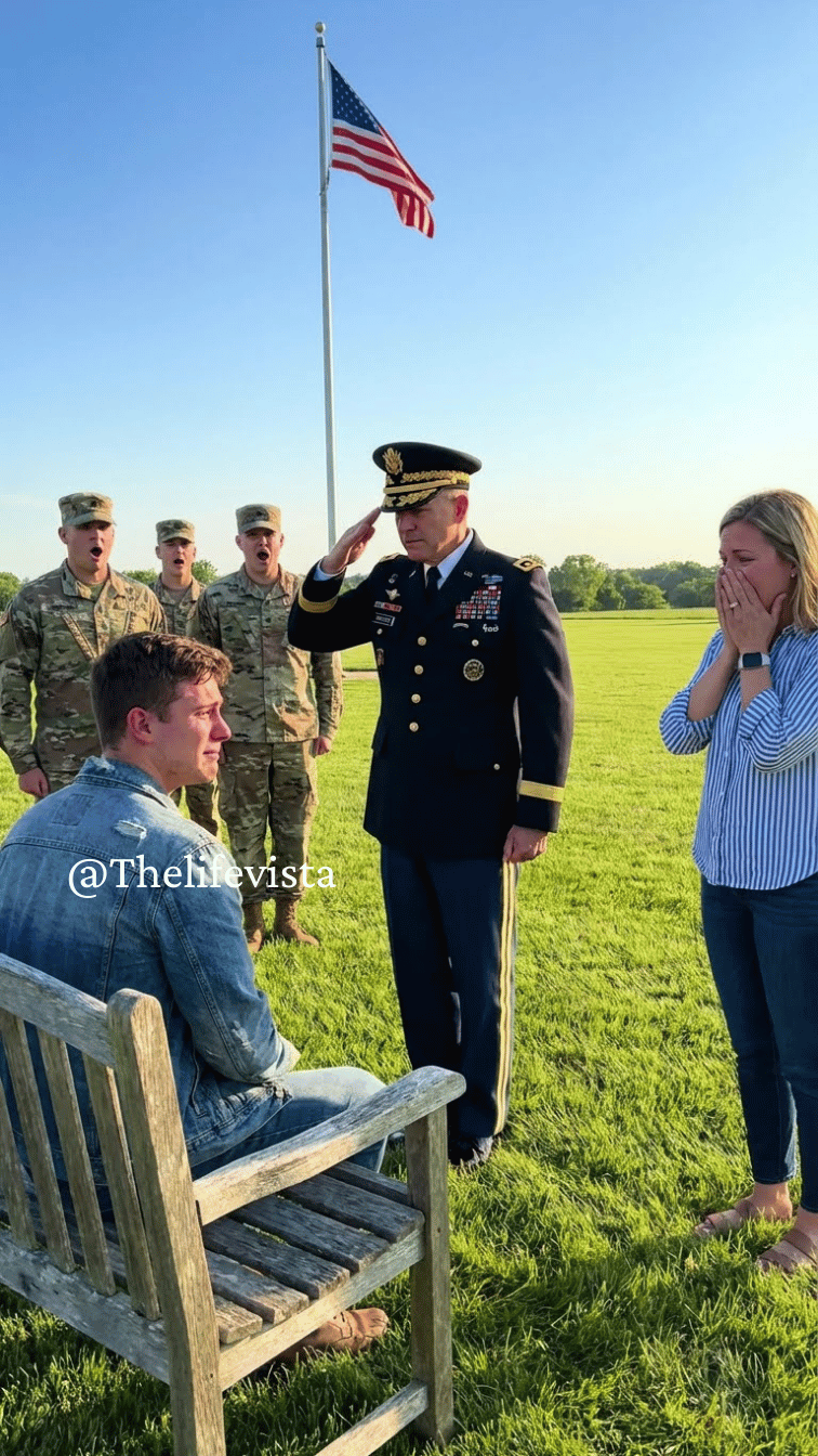 Slowly, painfully, as if pushing against the weight of fifty years, Robert Whitaker rose to his feet. He met the general’s gaze, and with a weary grace that spoke of battles both seen and unseen, he returned a slow, tired salute.