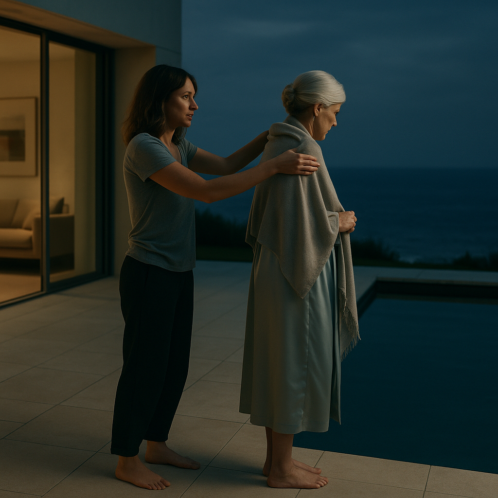 The next evening, I found Eleanor by the pool, staring at the water. Her silk robe clung to her in the breeze. She looked so small, so fragile. I draped a shawl over her shoulders. She didn’t resist.