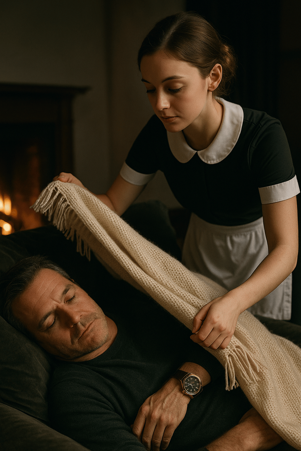 Ethan barely noticed her. For months, she was just another quiet presence who made the house function. But one night, as he sat alone in front of the fireplace with a drink he didn’t need, he heard something unusual.