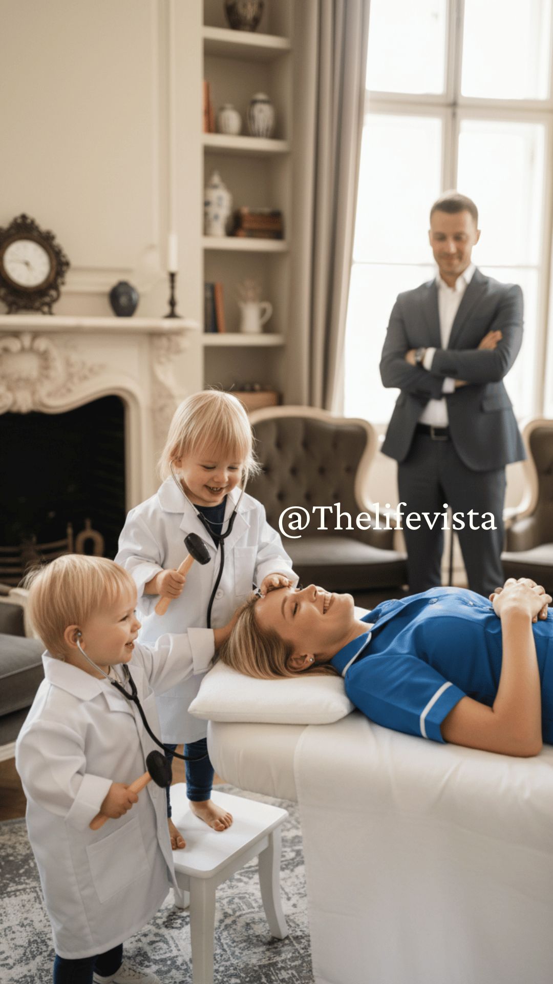 It culminated on an afternoon painted with the kind of golden light that makes memory kinder. Ethan heard laughter from down the hall: a wispy, disbelieving sound that made his palms numb. He pushed open the door to find Maya sprawled on a blanket like a patient in a play-acting hospital, the twins solemnly tucked in as if they wore stethoscopes. They played at being doctors. Olivia presented a plastic bottle and said, with the soft, clarion voice of the newly returned, “Mommy, here’s your medicine.”