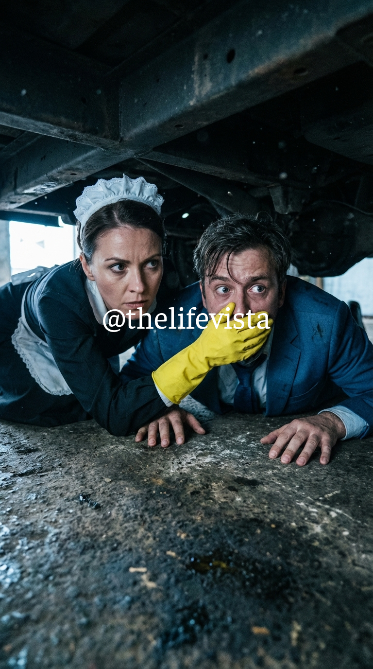The garage fell silent, waiting. Richard could hear his own heartbeat pounding in his ears. Maya’s yellow gloved hand was still pressed over his mouth, her dark eyes never leaving the narrow view they had from under the Bentley. Minutes crawled by. Richard’s body was cramping from the awkward position, but he didn’t dare move. Through the tiny gap, he could see the boots shifting impatiently in their hiding spots.