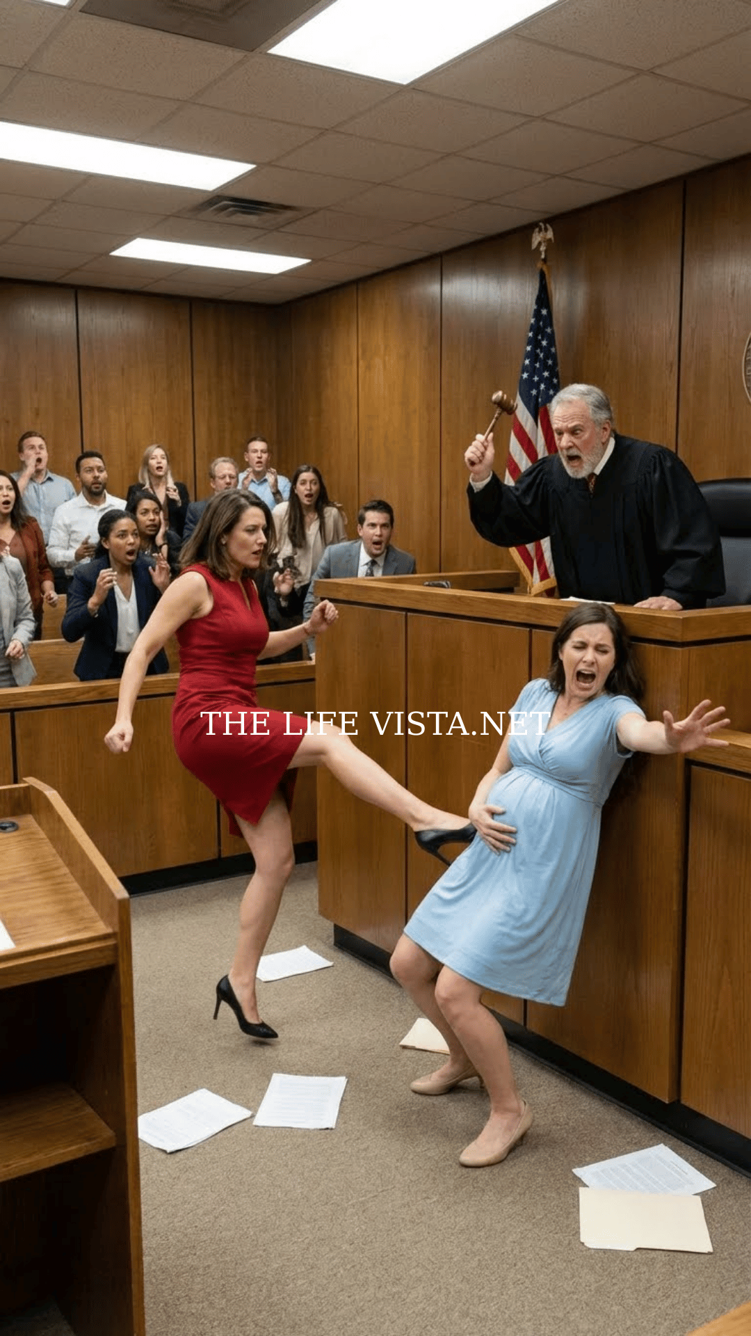 The mistress kicked the pregnant wife in the stomach inside the courtroom. The billionaire smiled, convinced he had already won. What he didn’t know was that the judge watching from the bench was the father his wife never knew she had—and the judge wasn’t merely observing, he was hunting….