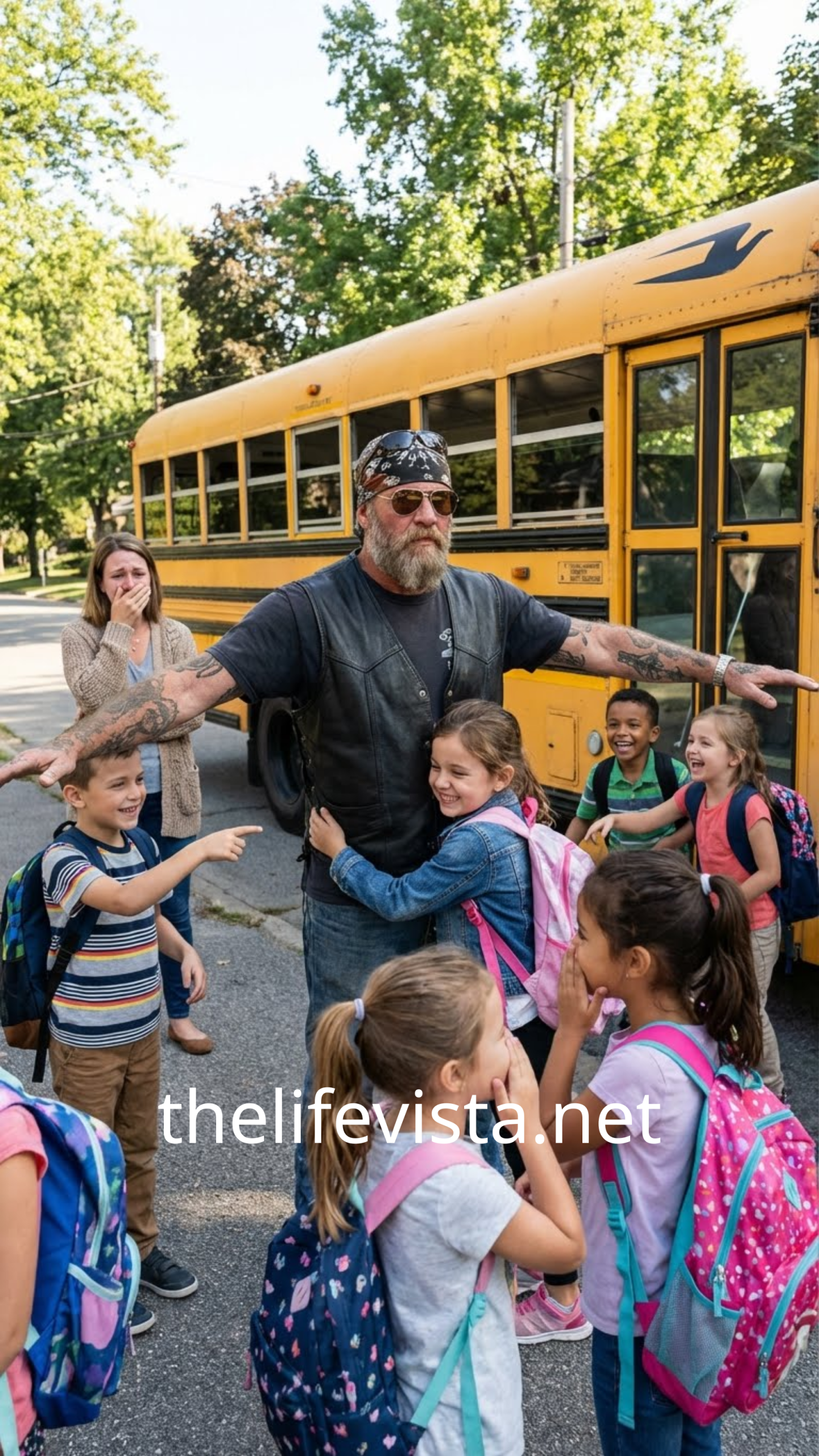 The biker school bus driver showed up on the first Monday of fall wearing black boots, faded jeans, and a thick leather jacket with the sleeves cut off. Tattoos crawled up his arms like old scars refusing to fade. His beard was trimmed short, his hair pulled back, and his face—hard, unreadable—never changed.