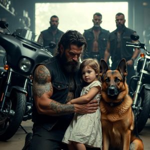 During a Violent Storm, a Bleeding German Shepherd Entered a Biker Club Carrying a Young Girl — What Was Discovered That Night Changed Everyone Inside Forever