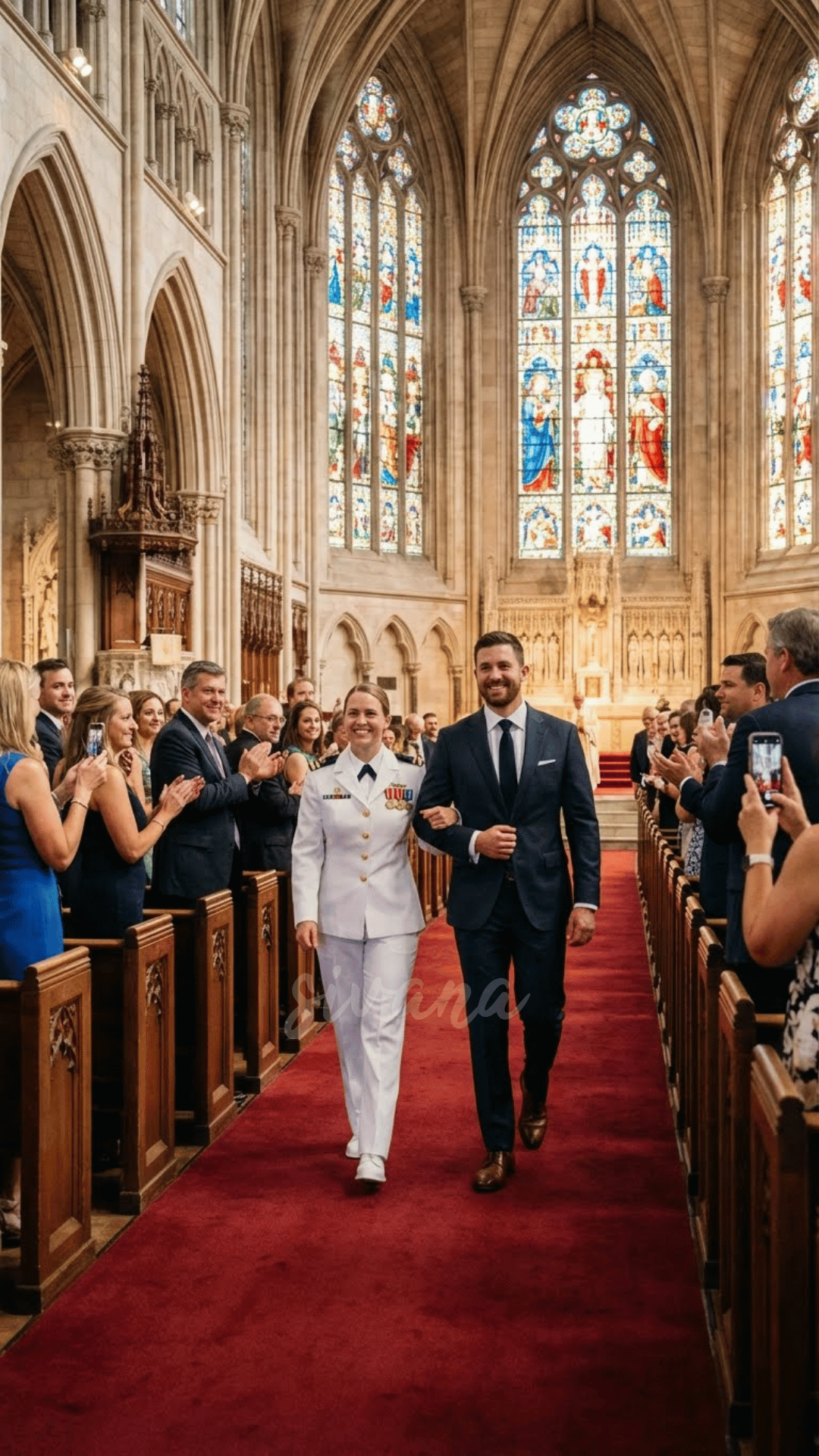The walk down the aisle felt longer than any runway I’d marched on at the Academy. Not because of nerves, but because every step peeled another layer of my past away. I’d expected whispers—maybe even judgment—from the guests. Instead, what I saw were people sitting up straighter, eyes bright with recognition of what the uniform meant. Several were veterans themselves; others were active-duty friends of Logan. They didn’t see a runaway bride. They saw a woman standing in her truth.