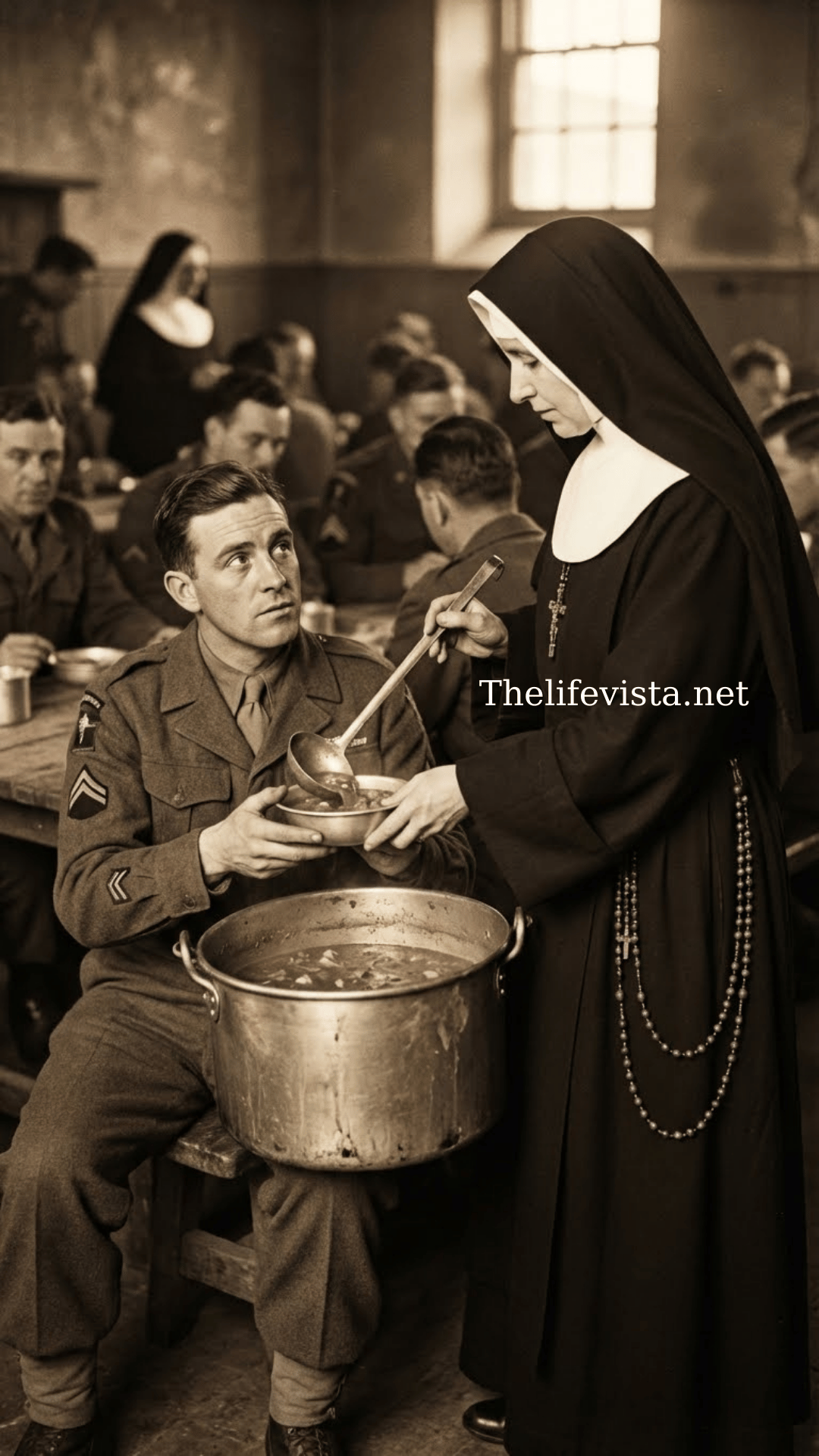 Years later, when tourists take photographs of the old stone building and the library windows that still fog with the scent of old books, an occasional whisper passes: once, a nun served a soup that changed the course of a town’s fate. People who know the full story think of the woman in the kitchen and the faces she could not wash from memory. They argue in cafes and on benches and in classrooms. The debate will never end, but in some small ways the place has healed: a plaque stands, children’s laughter drifts down lanes, and in the early March mornings—if you stand in the lane that runs behind the old library—you can sometimes, if you are very still, smell the faint ghost of vegetable soup, warm and unremarkable, and remember that at the heart of history there are always hands stirring a pot, and people listening for the sound of those spoons.