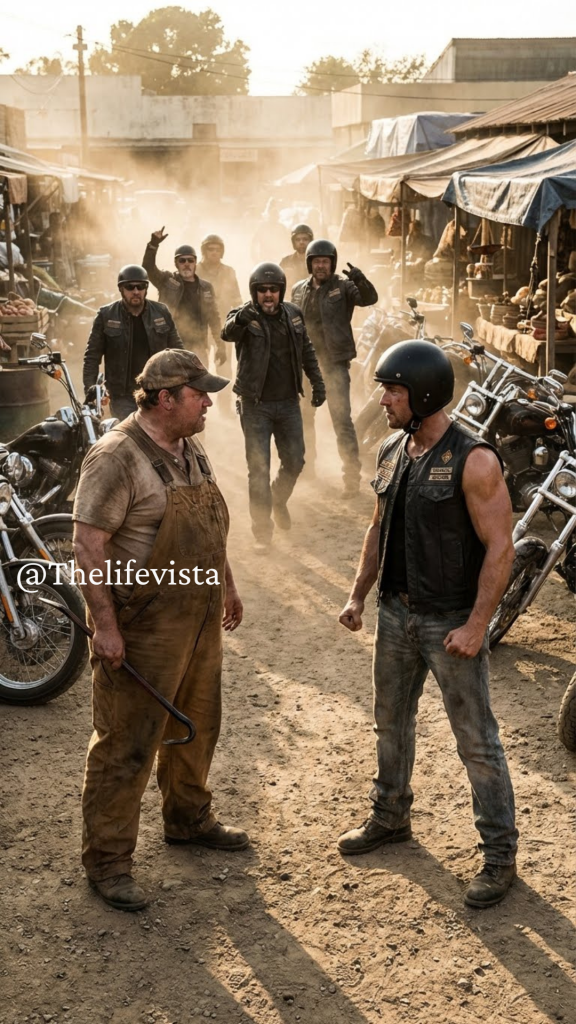 The punch came fast knuckles aimed straight at the fat farmer’s jaw. But James Cooper didn’t flinch. He caught the biker’s fist midair, twisted it with surgical precision, and whispered, “Not today.” The storm riders scream pierced Eagle’s rest market as bones cracked.