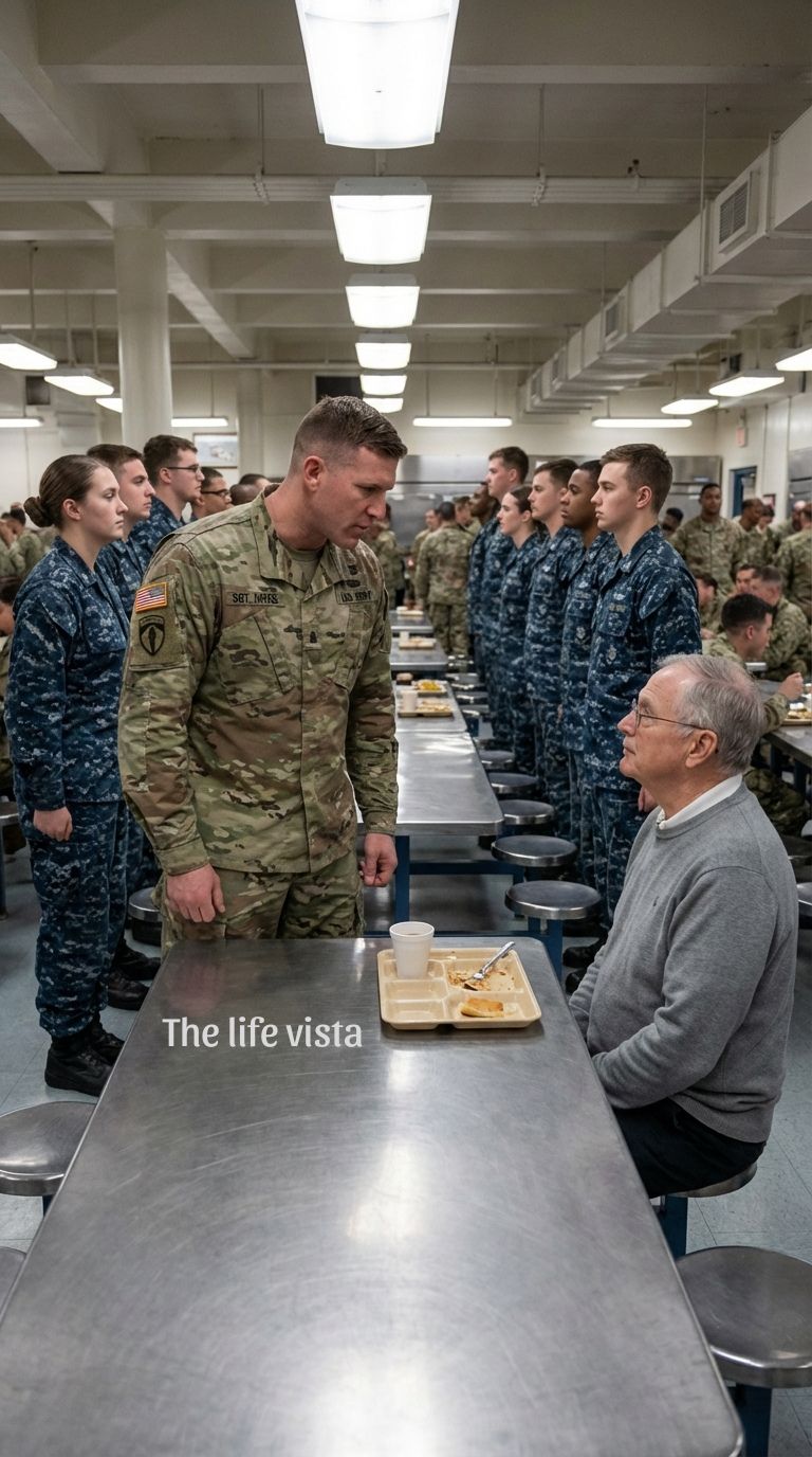 The atmosphere in the mess hall began to shift. It was subtle at first—a hesitation in the clatter of silverware, a drop in the volume of conversations at nearby tables. Then, it spread like a contagion. Heads turned. Eyes narrowed. The mess hall, usually a sanctuary of noise, began to hold its breath.