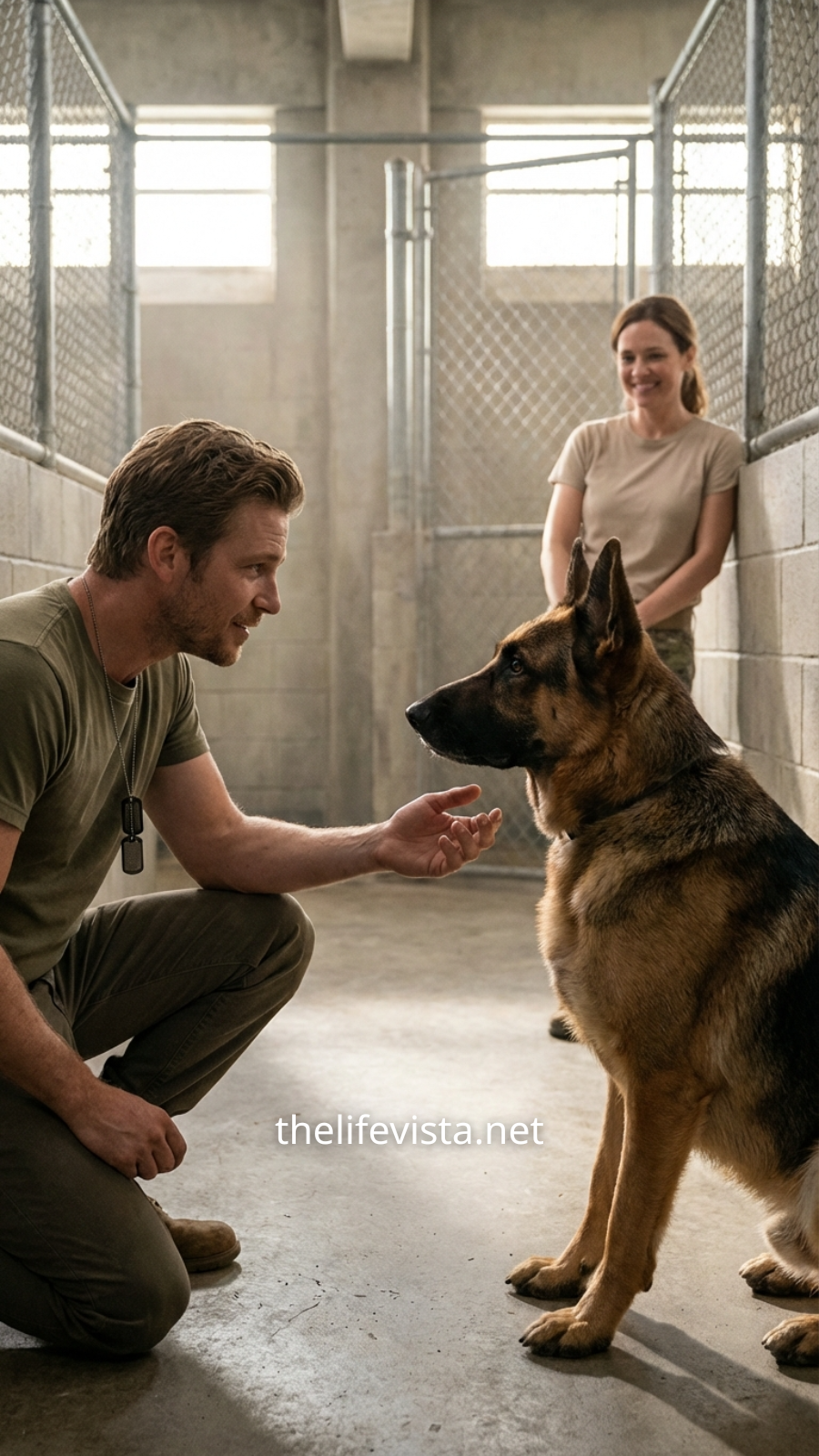 Jack stepped inside without hesitation and dropped down to one knee, ignoring the dirt and grime beneath him. He waited—bracing himself for the familiar burst of recognition, the excited whine, the wet nose nudging against his hand.