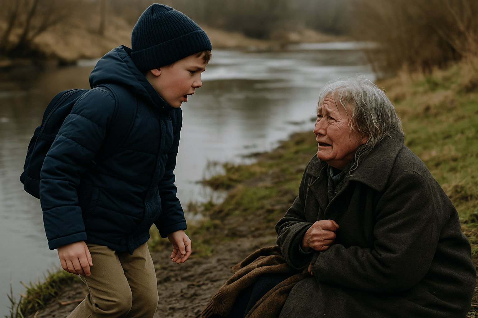 But the old woman clutched her hand. “No, my dear, not anyone. Someone pushed me in that river, and others passed me by. Only your boy stopped.”
