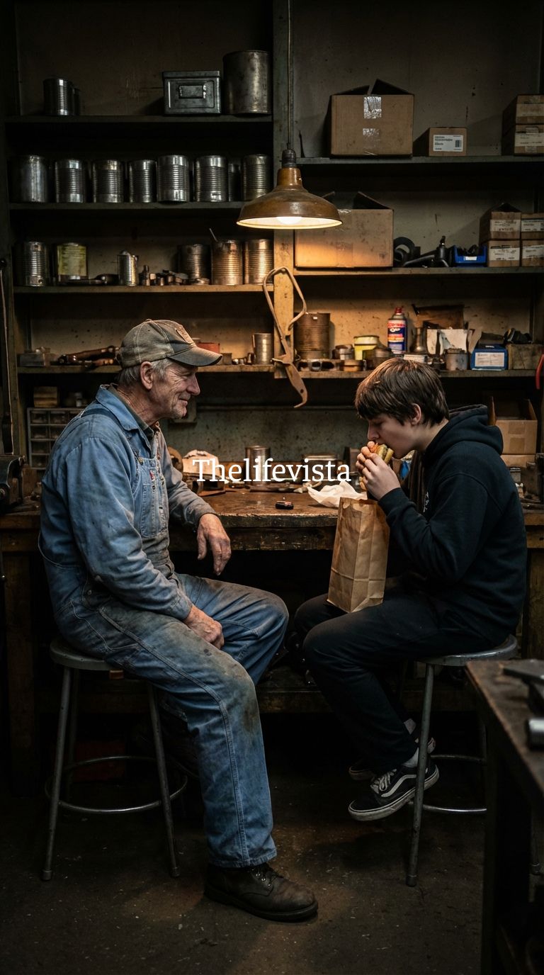 Across from him sat Mr. Miller, the custodian, gently scrolling on his phone while chewing a sandwich wrapped in foil.