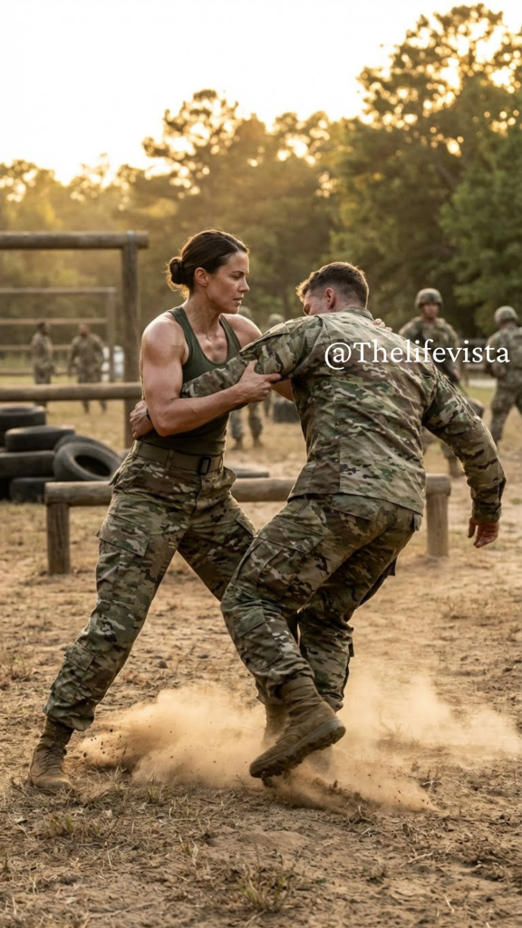 Weeks later, the story of that moment still lingered in whispers. New recruits who hadn’t been there heard it from those who had. Around bunks, in the mess hall, during long nights of guard duty, the tale spread: The sergeant threw her down. But she rose again and again, and in the end, he couldn’t touch her. It became more than a story. It became a lesson—a reminder that the dirt wasn’t the end. That the measure of a soldier—or any person—wasn’t in how many times they fell, but in how many times they rose.
