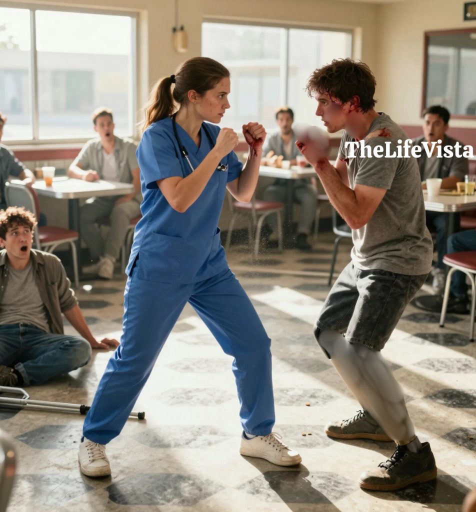 I turned to the boys, and the first one finally looked at me properly, scanning my wrinkled scrubs and tired face and deciding I was harmless because he had never met the kind of harmless that can become dangerous in a blink. “You need to apologize,” I said, and I didn’t raise my voice because volume isn’t power and I wasn’t asking for a debate. He scoffed and stepped closer, trying to loom, and I held his gaze without blinking because dominance is often decided by who looks away first. “You assaulted him,” I said, calm enough to be frightening, “and you will help him up, and you will apologize. Now.” The diner held its breath again, and the second boy made a noise like he wanted to laugh but wasn’t sure it was safe anymore, and the first boy tried to turn the moment into a joke by telling me to mind my own business, telling me to go pour coffee, telling me I was “you people,” and in his mouth the phrase sounded like he believed service workers were furniture too.