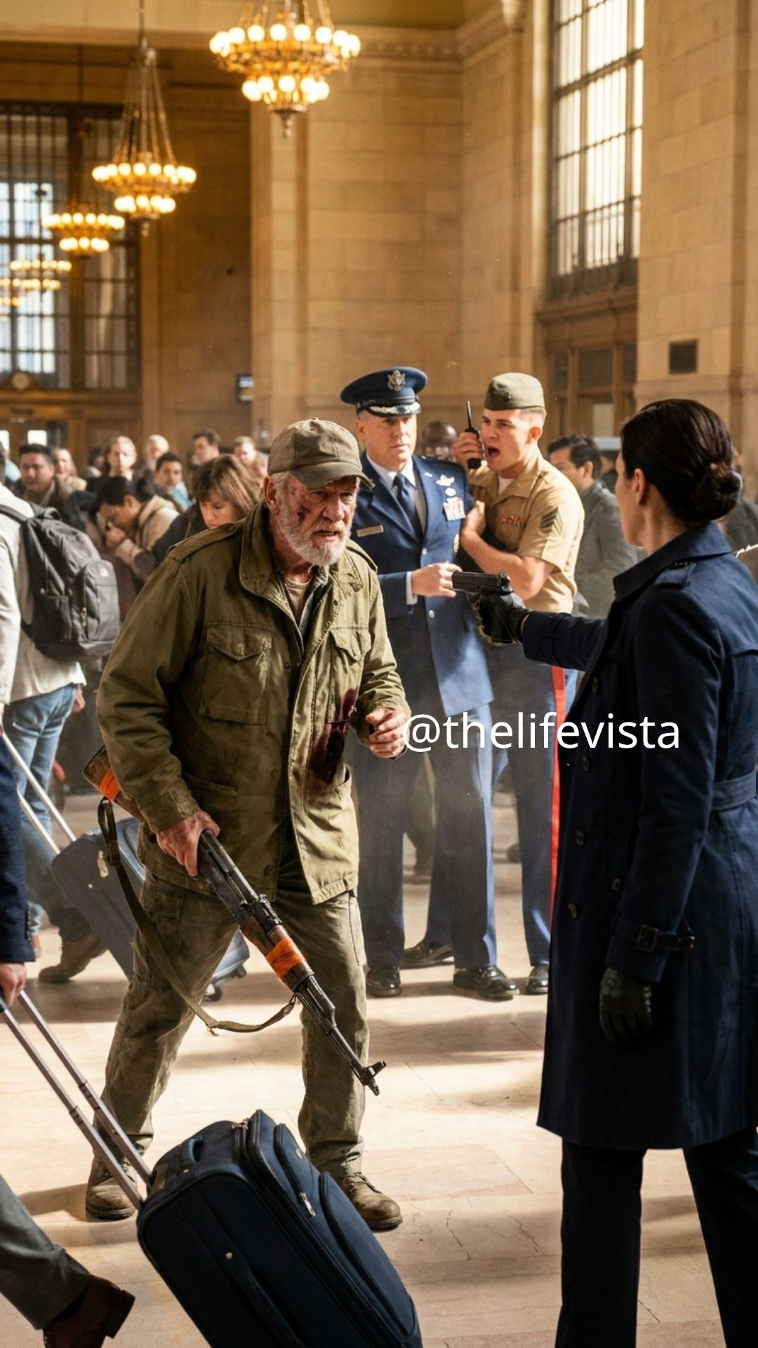 In the main concourse, under the gold light and echo of evening travelers, a woman stepped from the crowd in a navy coat and raised a suppressed pistol toward Brooks.