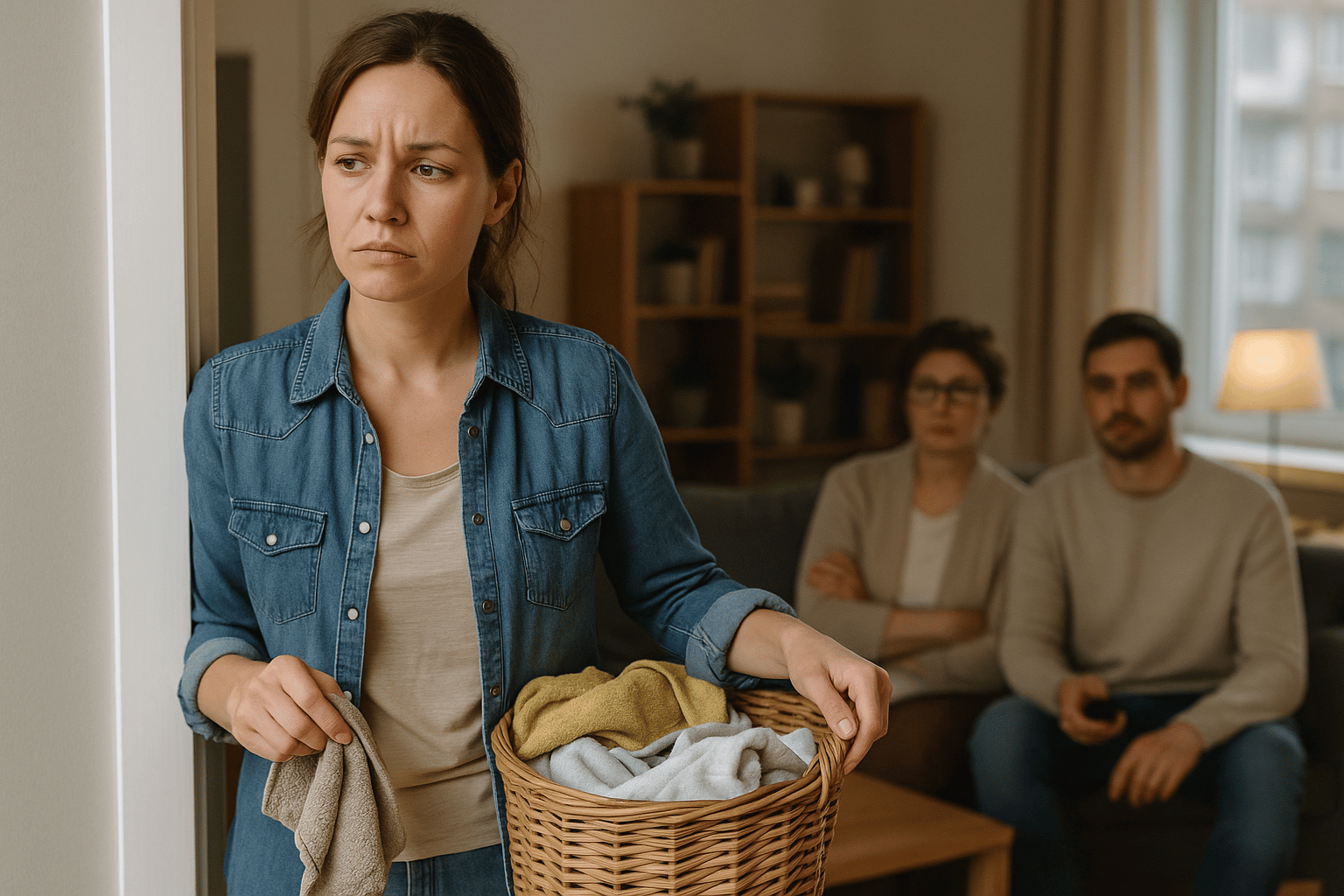 She set the table in silence, wiped her hands, and picked up a rag to “dust” the living room — one lazy swipe here, another there.