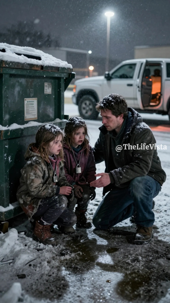 Two small heads peeked out from behind the dumpster. It was two little girls—no older than eight—dirty, trembling, and barely holding on to the cold. They were shaking, their clothes ragged and too thin for the brutal winter chill.