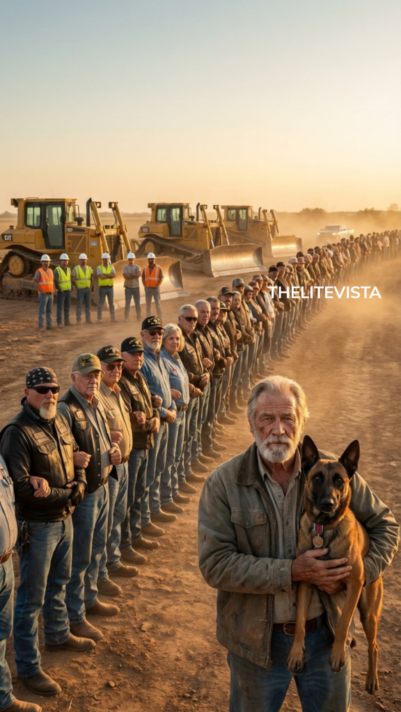The bulldozer operators slowed. One engine idled uncertainly. Another cut out entirely. Men inside the cabs looked at one another through dusty glass, suddenly aware that they had not arrived at an empty job site but at the edge of a public reckoning.