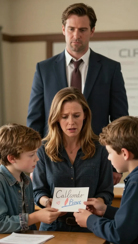 When the children began presenting their cards, Adrian stepped forward first, placing the paper heart into Nora’s hands with careful intent. Julian spoke next, his voice steady despite the attention of the room, his words simple yet profound. He said the card was for someone who helped them remember their mother, someone who made that memory feel less distant. The statement lingered in the air, drawing quiet attention from those nearby. Sebastian felt something shift inside him as he listened.
