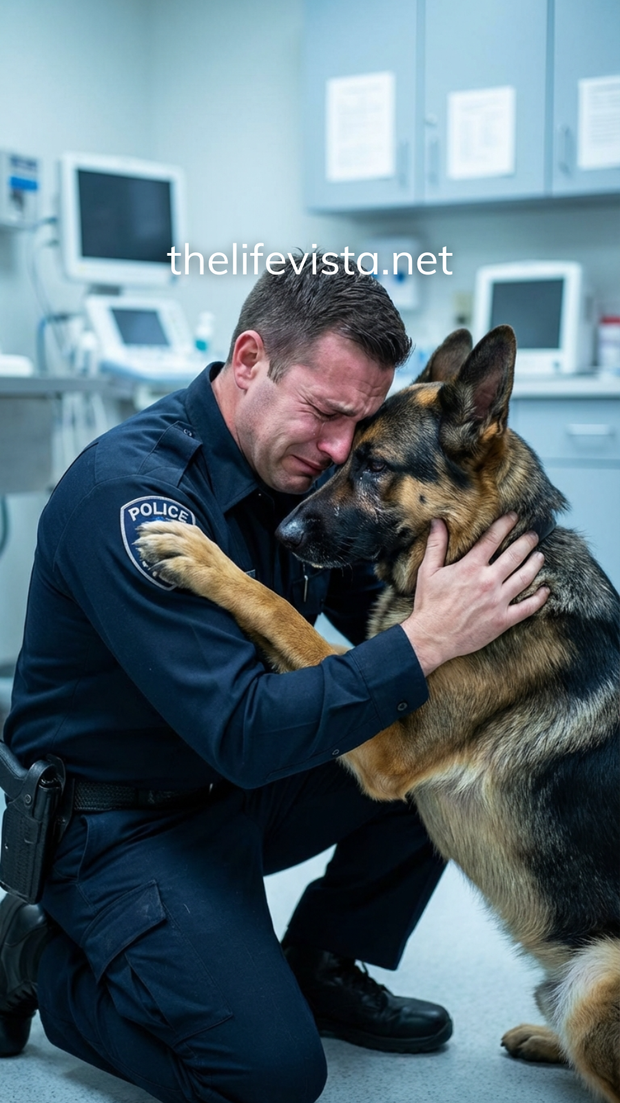 Dr. Hayes spoke in the careful tone reserved for moments that fracture lives. Organ failure. Rapid decline overnight. No response to oxygen. No response to medication. “We’re out of options,” she said, and the words felt final. The euthanasia papers were already waiting—crisp white sheets that looked indecent beside Rex’s shaking body. Two officers, Sharp and Daniels, stood near the wall—silent witnesses to a goodbye that didn’t feel merciful, only devastating.