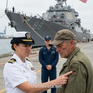 The car lurched forward, the engine straining against a system that was trying to cut the fuel line. As they crawled toward the sector exit, Caleb saw Lieutenant Mercer standing by the roadside, flanked by two Shore Patrol officers. The young man looked stripped. Not of his rank—that would come later—but of his certainty. He watched the Admiral’s car pass with a hollow stare, his gaze locking onto the royal blue of Caleb’s shoulder through the glass.
