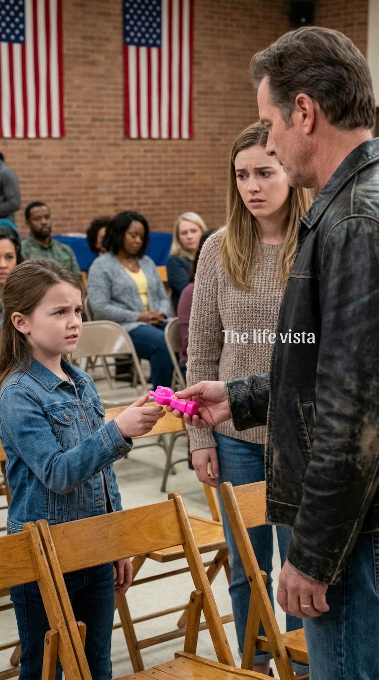 The ribbon caught the light, delicate, worn at the edges, the exact kind tied in the hair of a small girl standing on stage. Vespera. Eight years old, blonde hair neatly tied back, bright eyes, and an air of innocence that had made her teachers say, “She’s a bright one. Always ahead of herself.”