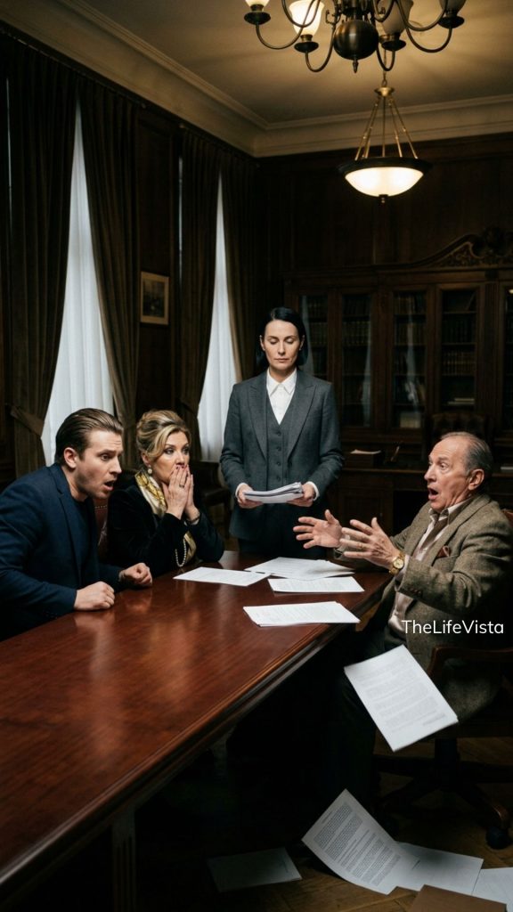 Malcolm reached the bottom of the 16th page. He formally concluded the reading of the primary will and testament. Evelyn let out a long theatrical sigh of profound relief, lifting her chin to survey her newly confirmed kingdom, Grant tossed his smartphone onto the table with a loud, arrogant clatter, fully prepared to stand up, shake the lawyer’s hand, and demand the immediate transfer of the property deeds.