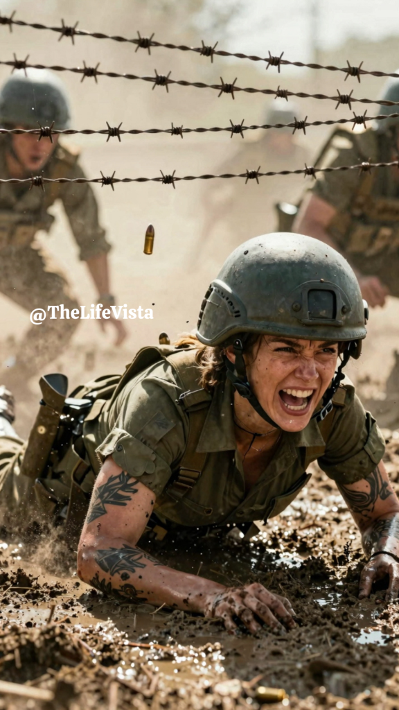 200 yd of mud beneath razor wire. Her shoulders screamed. The uniform clung to her skin, heavy with water and grit. She focused on breathing in through the nose, out through the mouth, and kept moving forward. She won’t make it past pool comp. Someone muttered as she passed. 20 bucks says she’s gone by dive phase. Their words were background noise now.