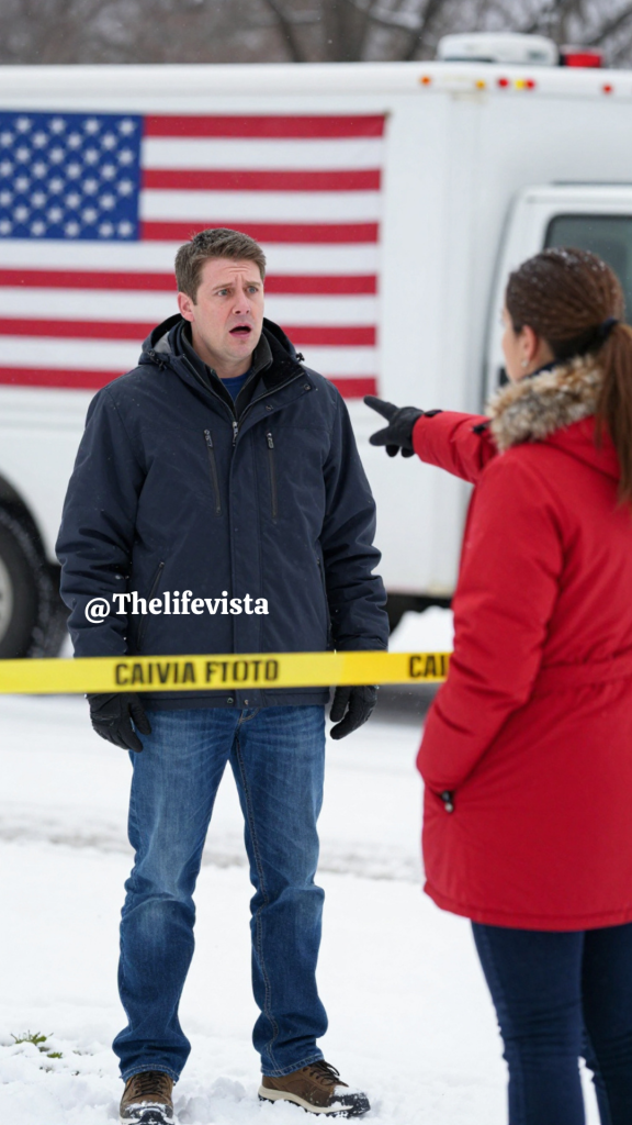 Her red blazer looked almost violent against the white glare of packed ice. She waved her arms like she was directing traffic that no longer existed, her voice carrying clearly across the divide. “This is unacceptable! He’s blocked our only exit! This is criminal behavior!”