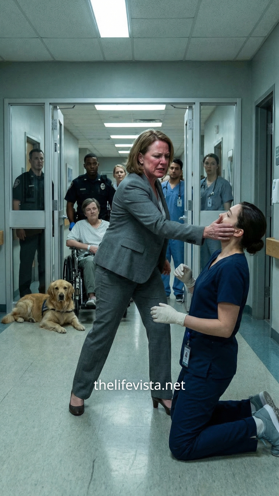 A charge nurse appeared, face tight. “Sir, you can’t bring a dog in here.”