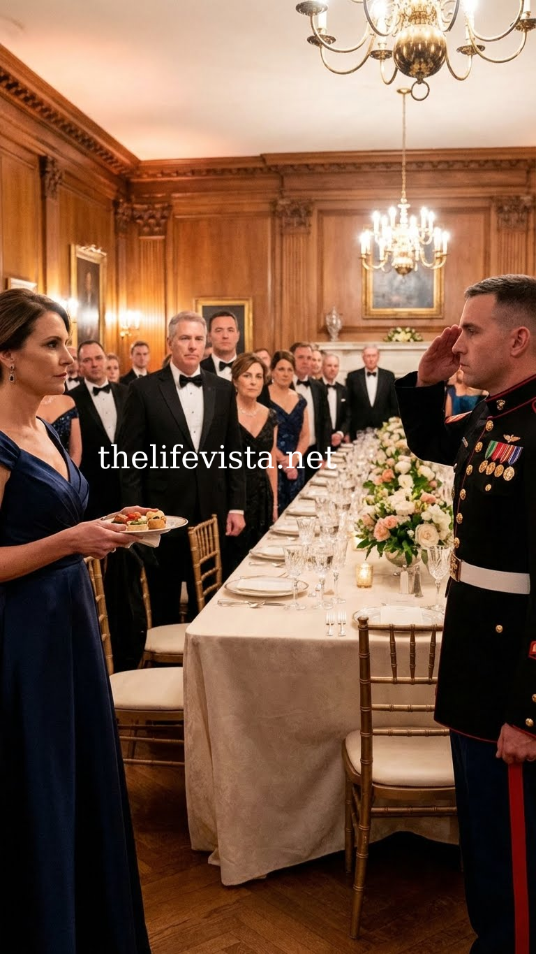 His posture shifted by the smallest degree, shoulders squaring, chin lifting just enough that only someone trained to notice would see it. The glass in his other hand, Borbin, two fingers, one ice cube, slipped from his fingers and hit the travertine floor with a sharp crack that cut through the string quartet like a gunshot.