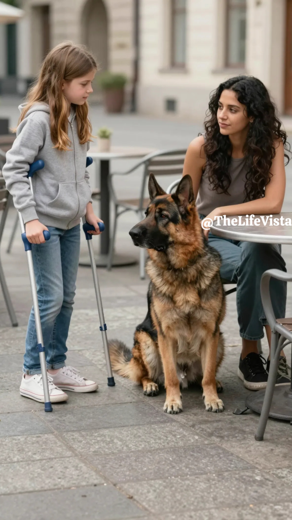 “May I sit here?” the little girl asked softly, standing carefully on one flesh leg and one prosthetic in front of Staff Sergeant Eleanor “Ellie” McKenna, a United States Marine on leave, seated with her retired K-9 partner. Before Ellie could answer, the dog suddenly snapped to attention and sat in a perfect military posture. In that instant, Ellie recognized the unmistakable military-grade prosthetic beneath the child’s jeans and the outdated Marine Corps insignia hanging from the girl’s small hand.