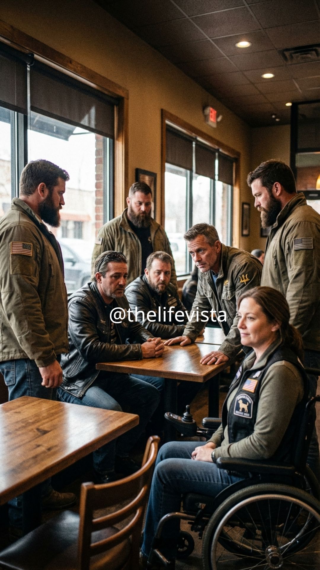 Outside the café, the world continued its usual hurried pace — cars passing by, people rushing home from work, completely unaware of the silent battles fought every day by men and women like Elena Voss. They would never know the true cost behind the safety and freedom they took for granted. Yet inside that small café, something powerful had been restored. Respect had returned. Courage had been honored. And a clear message had been sent to everyone present: true strength does not always roar loudly — sometimes it sits quietly in a wheelchair, waiting with unshakable dignity until it is truly needed.