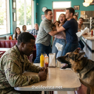From a small table in the corner, a young man in a simple t-shirt and jeans watched everything unfold. His name was Ryan Hale, an active-duty soldier home on leave. He had seen the Trident on her chair and knew exactly what it meant. Seeing these thugs mock a real warrior filled him with hot, protective rage.