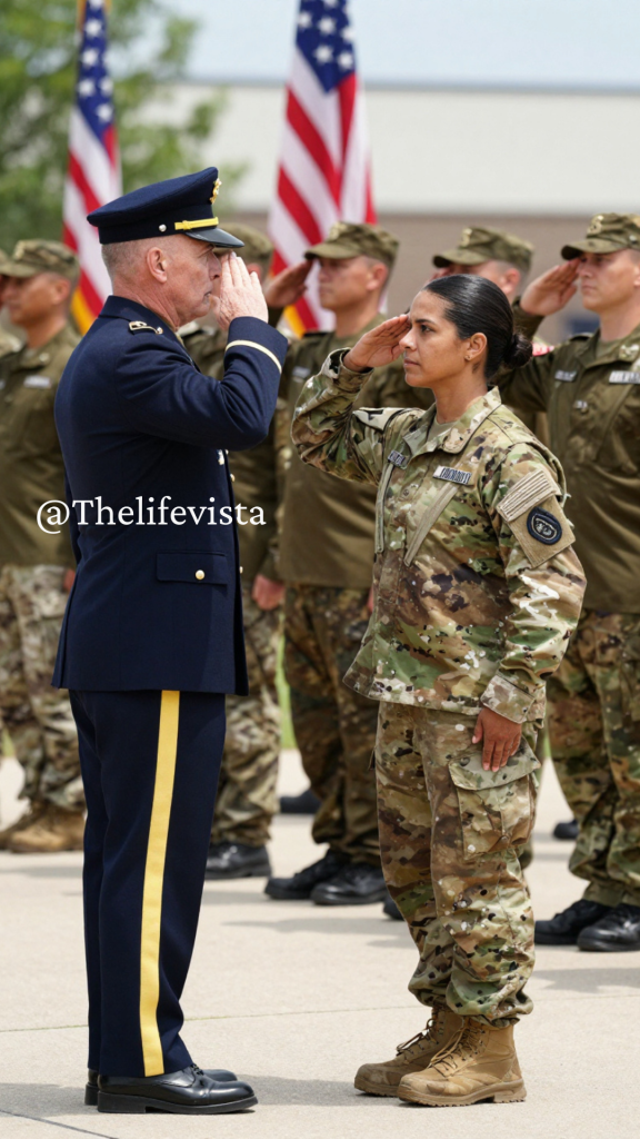 But Colonel Whitaker’s face told its own story. His pale features twitched, his jaw clenched. He looked at her like a man seeing a ghost. Slowly, almost mechanically, he raised his hand. He removed his cover. And then, in front of the entire assembly of soldiers, recruits, and officers, he saluted her.
