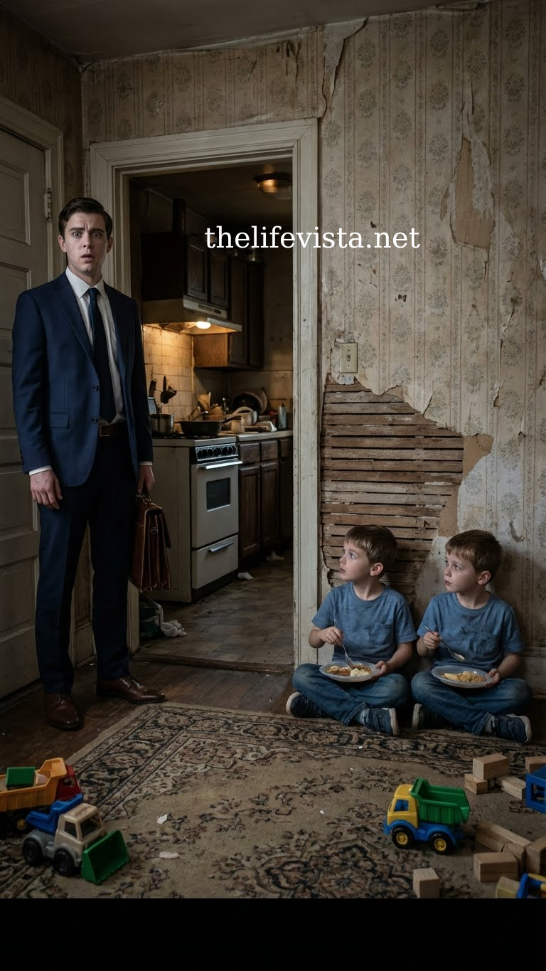 The next evening, determined to confront her himself, Lucas tracked Madison to her small apartment in one of Chicago’s poorer neighborhoods. The hallway’s peeling wallpaper, the dim light, the worn furniture—it was a far cry from the elegant restaurant. As he reached the kitchen, he froze. Two young boys sat happily eating the very leftovers he had seen on camera. His anger vanished, replaced by shock.
