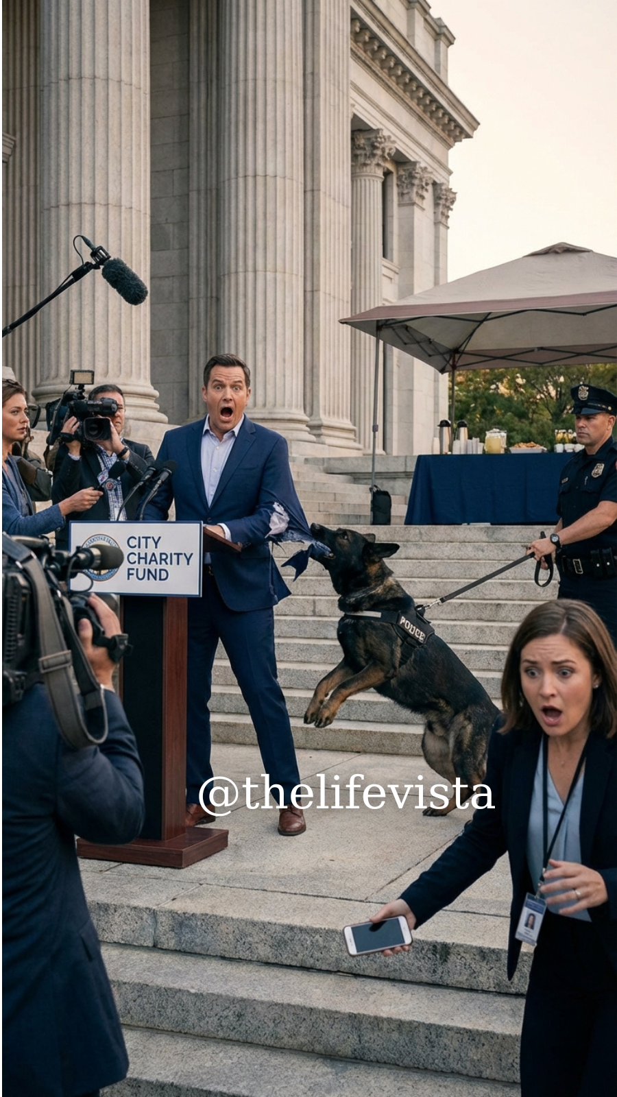 The first time Kylo broke command, it wasn’t in a dark alley or during a high-speed chase or in any of the scenarios people imagine when they hear the phrase “K9 incident,” it was on a polished courthouse plaza on a bright, self-congratulatory afternoon filled with cameras, catered pastries, and a man whose smile had been rehearsed in mirrors for decades, and if I close my eyes even now I can still hear the exact pitch of the crowd’s gasp when eighty pounds of disciplined Belgian Malinois muscle launched forward with a certainty that didn’t feel like aggression but like accusation.