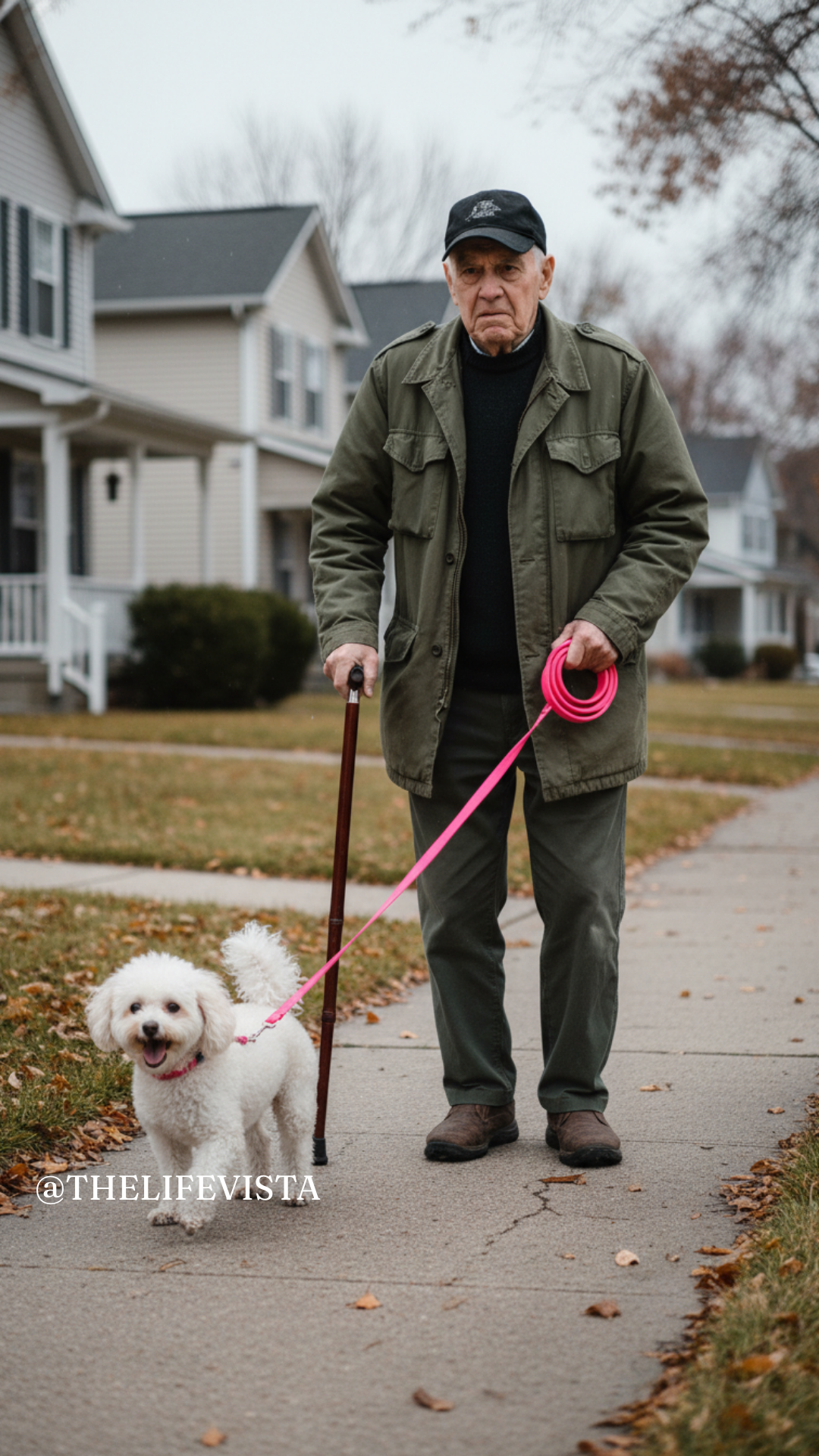 So, here I am. 7:00 AM on a Tuesday, standing on a street corner in a suburb that doesn’t look like the one I bought a house in forty years ago. I’m wearing my faded utility jacket, leaning on a cane that I hate, holding a bright blue retractable leash.