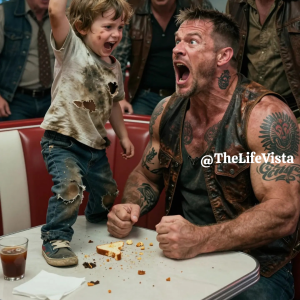 At a nearby table, a little girl — no older than six, with curls the color of autumn leaves — sat clutching her fork. Her eyes were wide, innocent, full of something the rest of the room had lost: compassion.