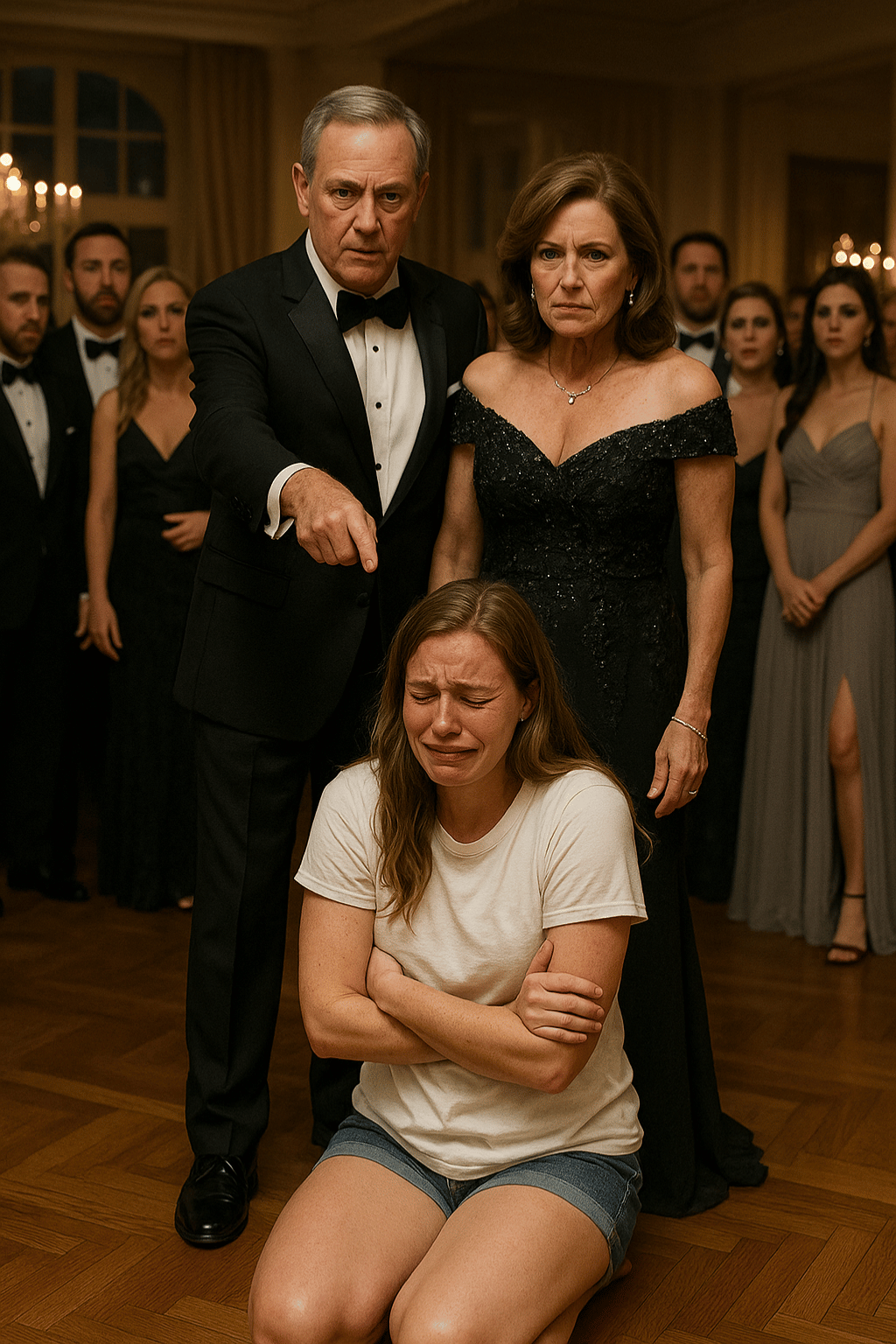 I begged them not to. They didn’t listen. Margaret grabbed my arm; Sophie tore at my dress. The zipper gave way. I screamed — but in seconds I was standing there in my underwear, under a spotlight, as two hundred people stared and filmed.
