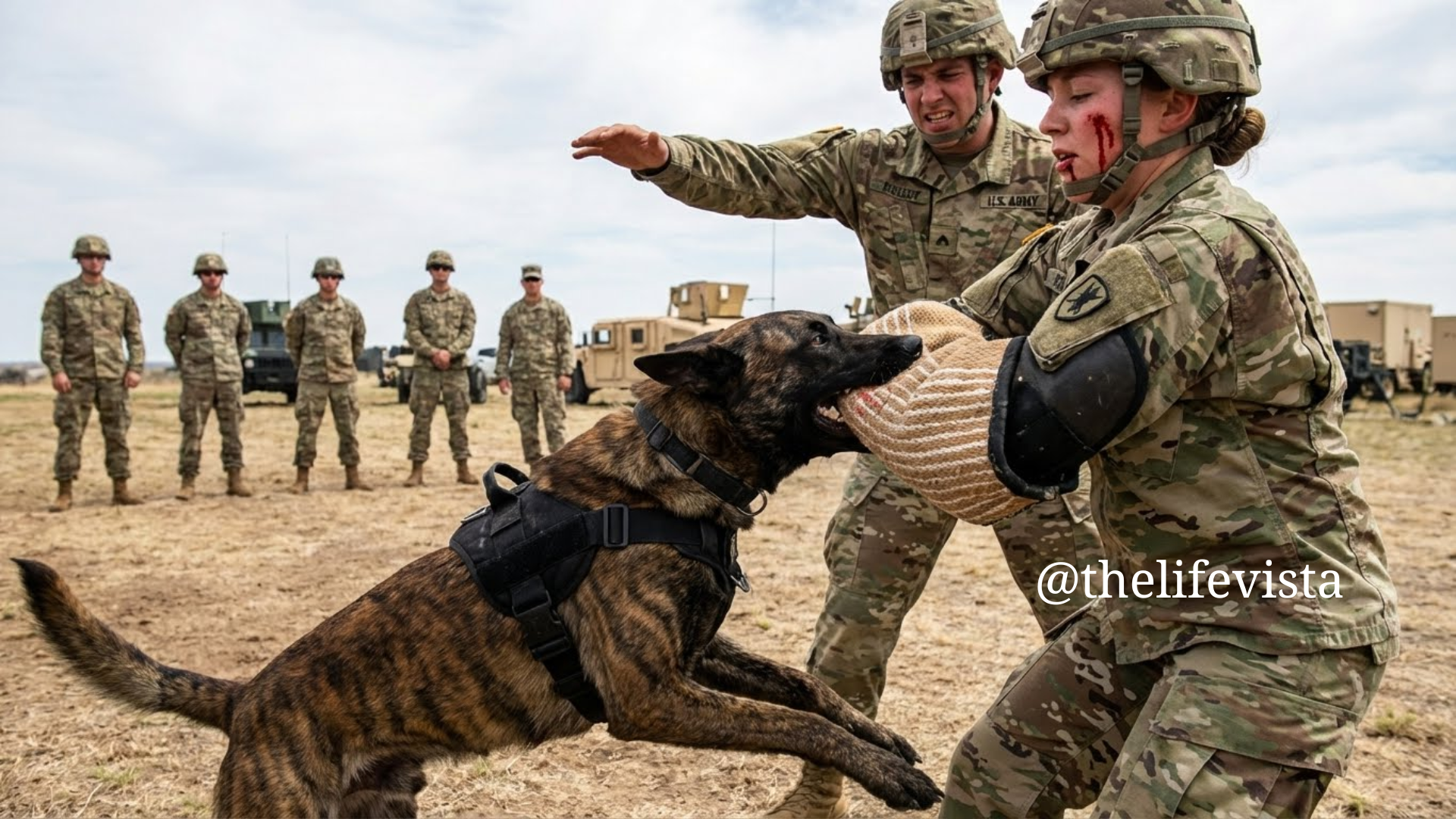 Echo sat perfectly still, eyes locked on the men who had attacked her handler, body rigid but controlled, muscles coiled like steel cable under fur. No barking. No snarling.