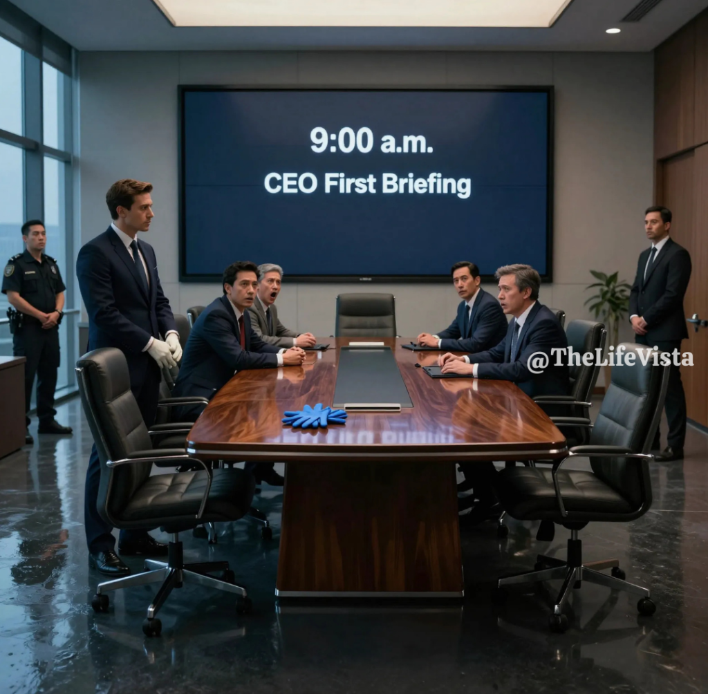 A man in a tailored suit stood near the head of the long glass table, irritation written across his face. “This floor is for executives only.”